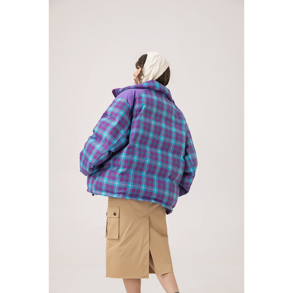 Unisex Coat Plaid Stand-up Collar Cotton-Padded Coat Winter Thickening