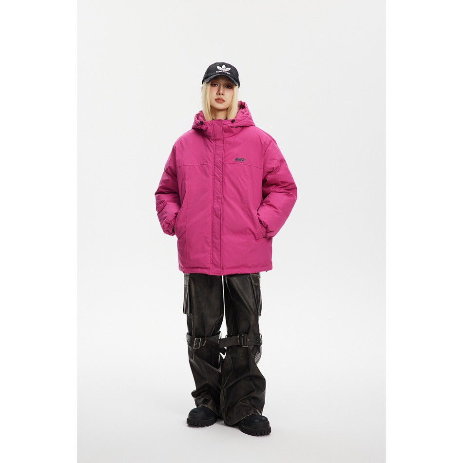 Unisex Coat Rose Red Loose Winter Thick Cotton-Padded Coat
