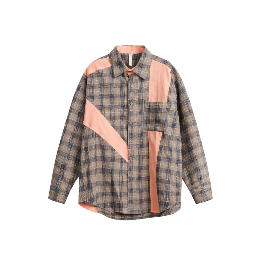 Unisex Shirt Plaid Retro Stitching Cardigan