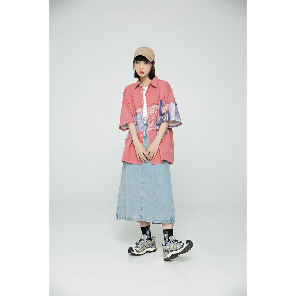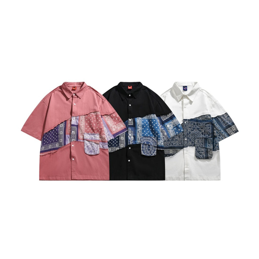 Unisex Shirt Summer Retro Paisley Stitching Loose
