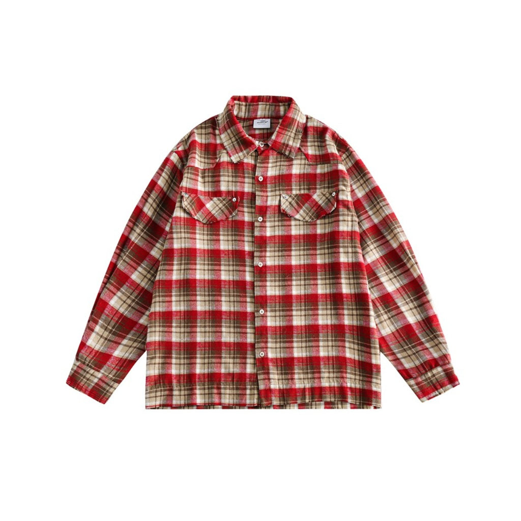 Unisex Shirt Retro Loose Long Flannel
