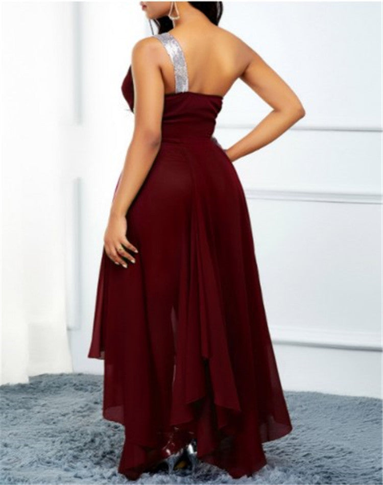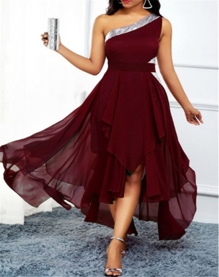 Valentine's Day Dress Autumn and Winter Fashion Sloping Shoulder Dress