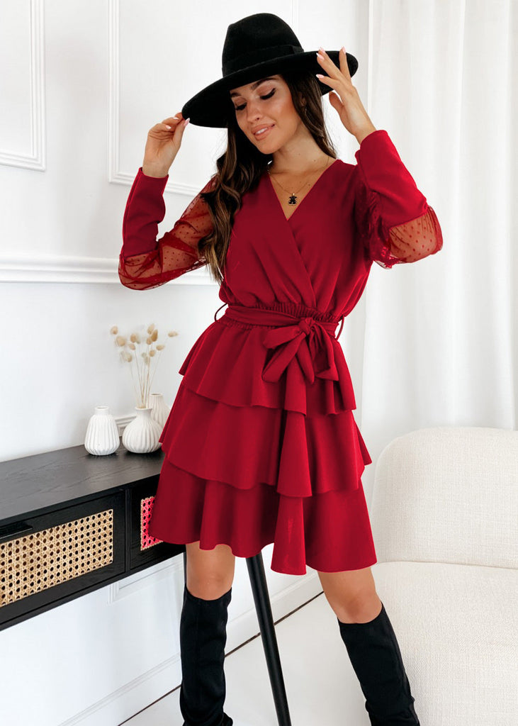 Valentine's Day Dress Spring Stitching Mesh Sleeve Long Sleeve Dress