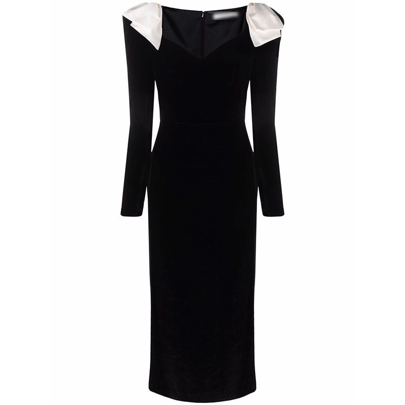 Valentine's Day Dress High Black Bow Velvet Dress Autumn and Winter Dress