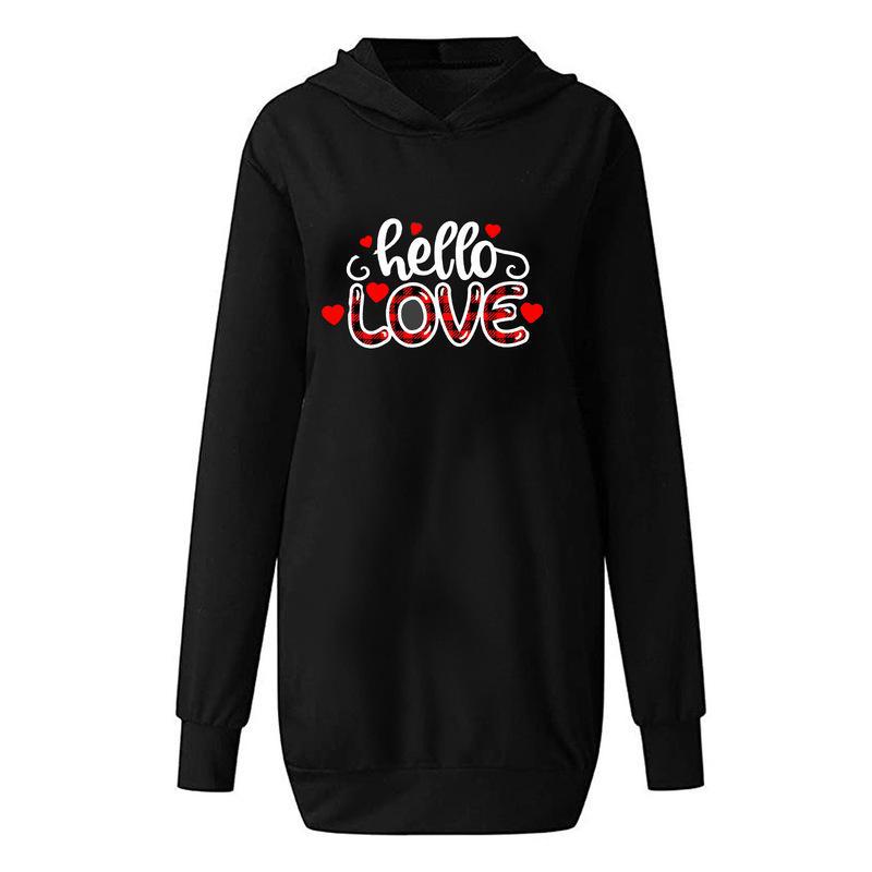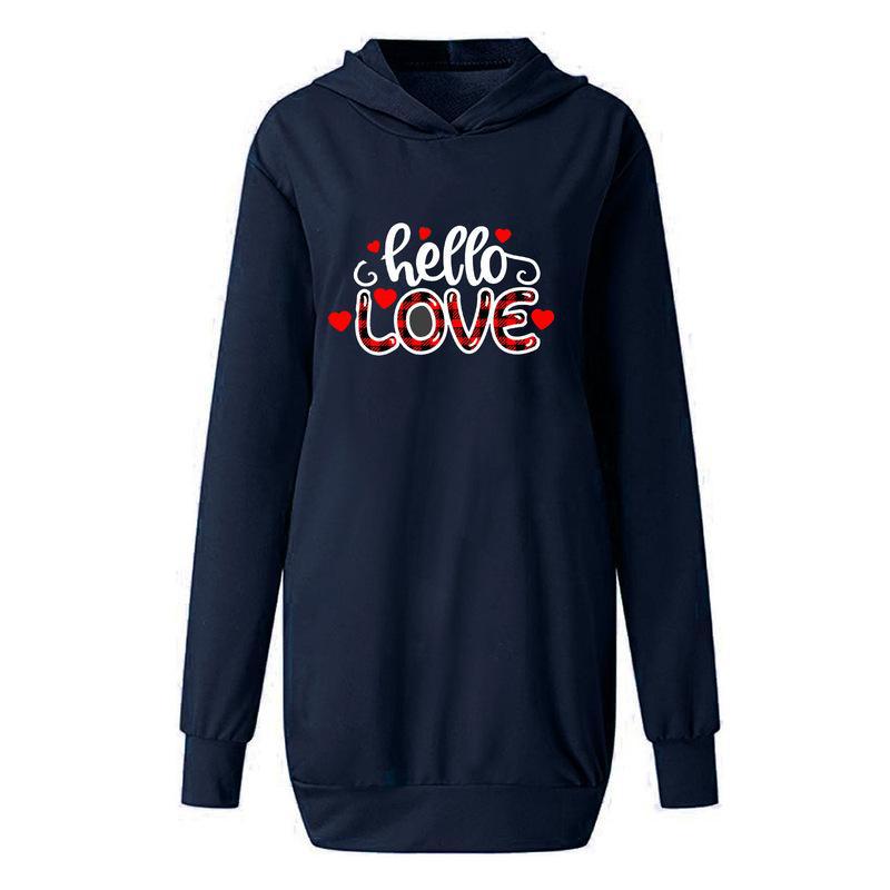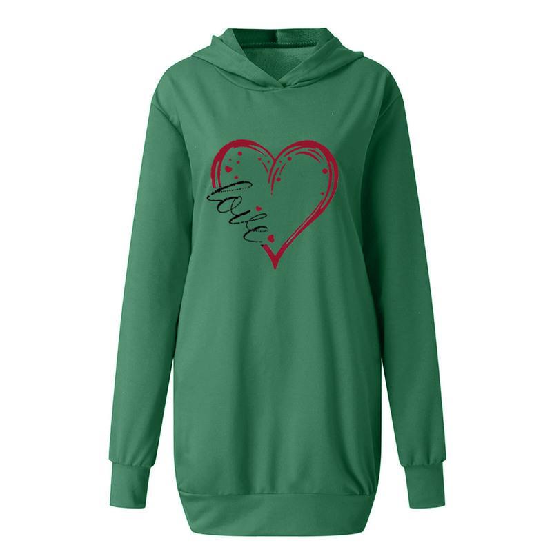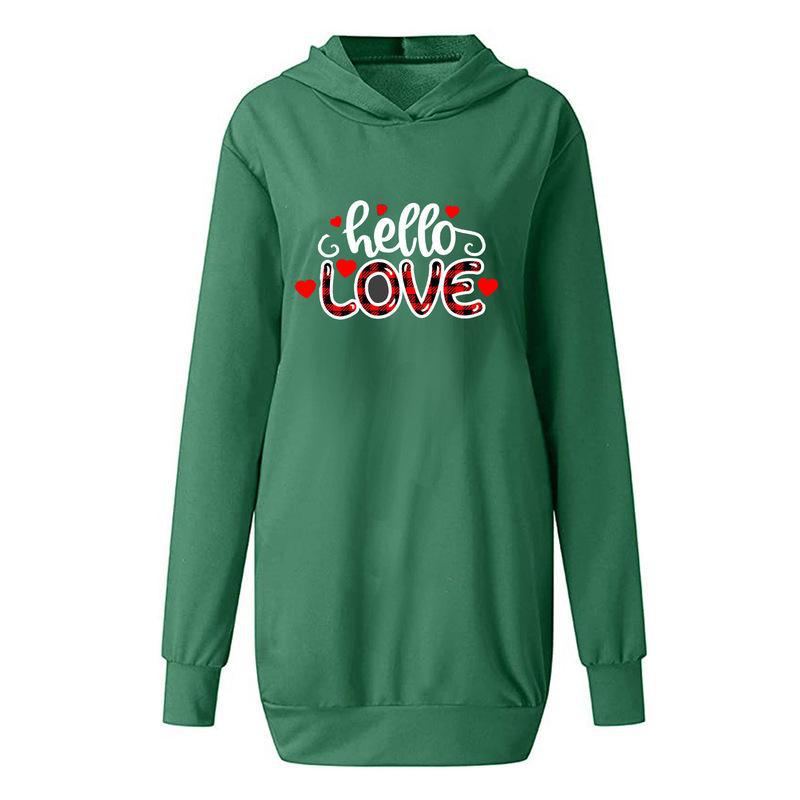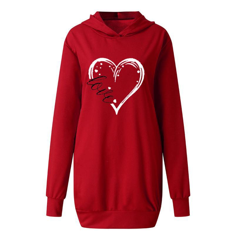 Valentine's Day Dress Autumn and Winter Hooded Printed Sweater Dress Women's Clothing