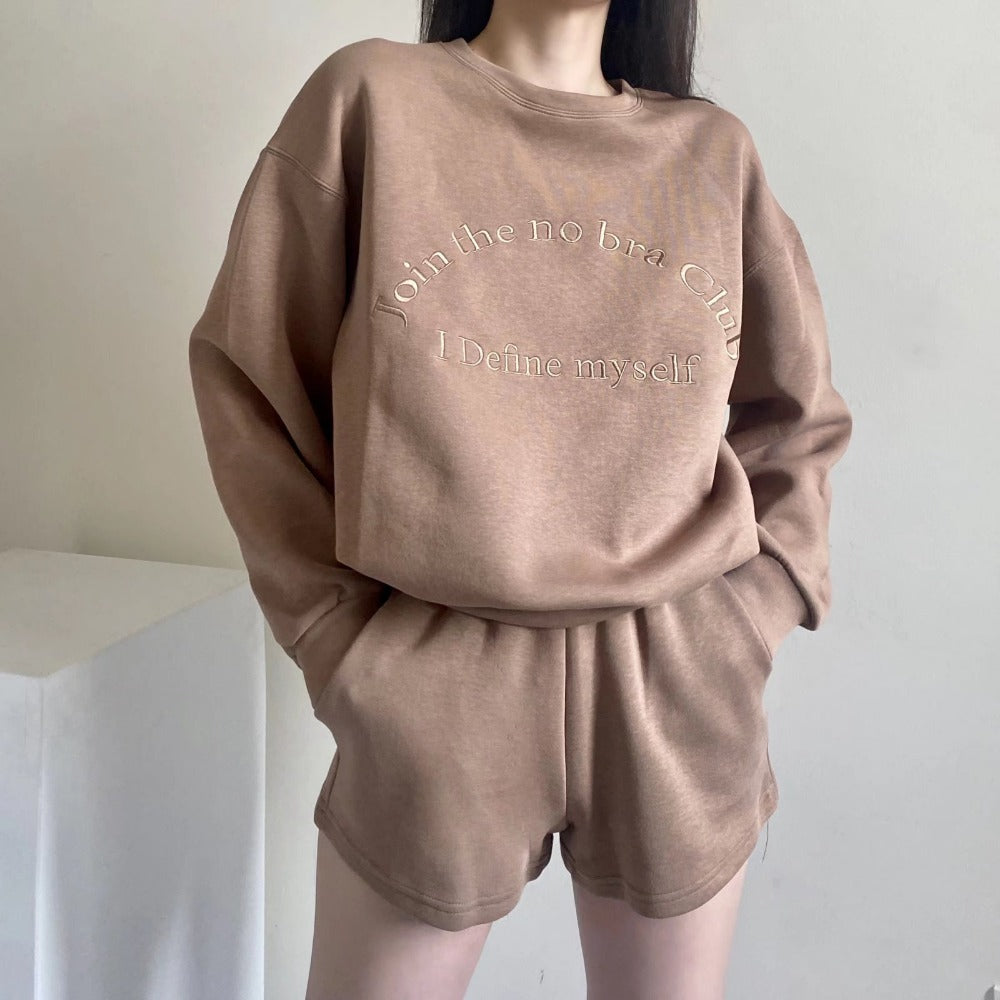 Women Hoodie Sweater Set Embroidery Loose Two-Piece Suit