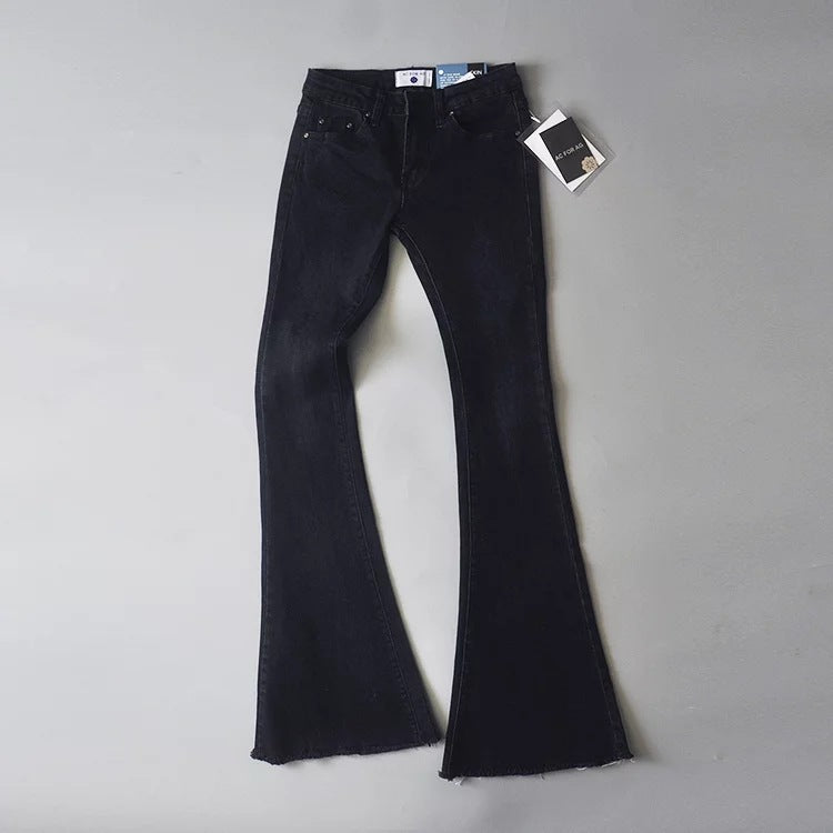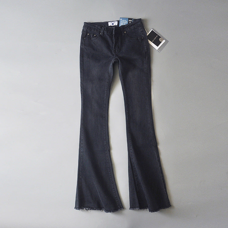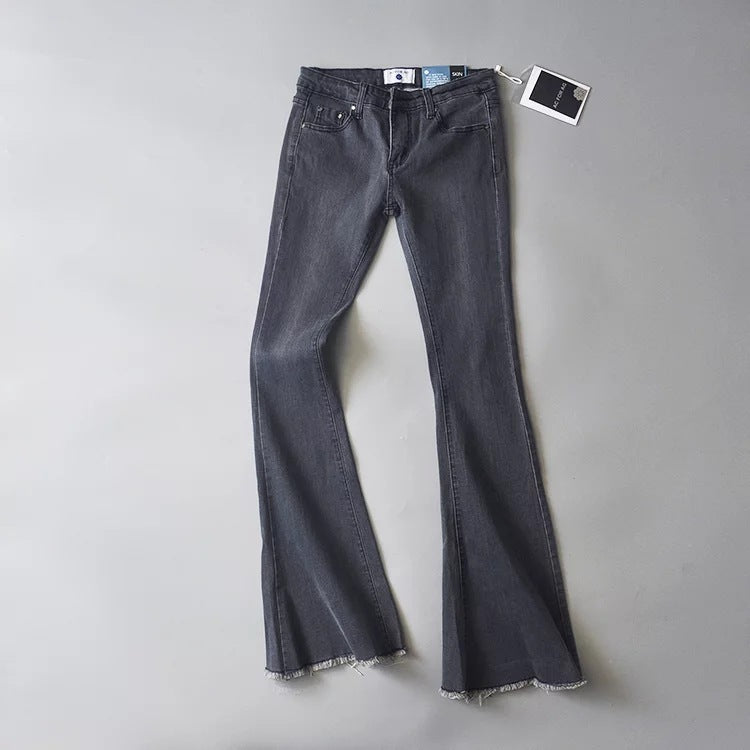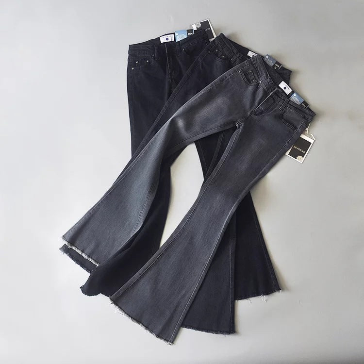 Women Jeans Frayed Flared Pants Stretch
