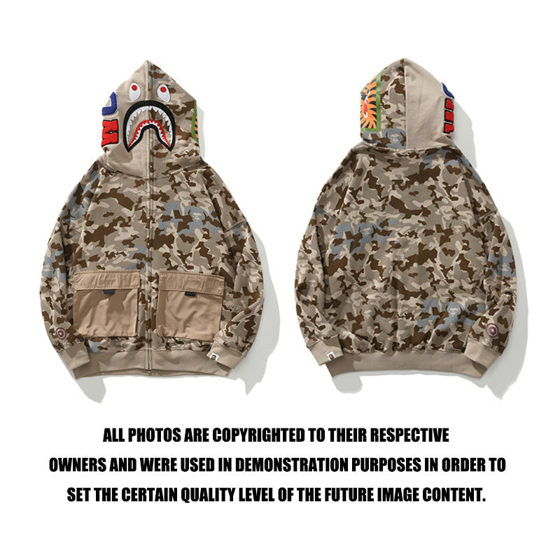 Bathing Ape Hoodie Shark Sewn Large Pocket Zip Hooded Cardigan Sweater Jacket
