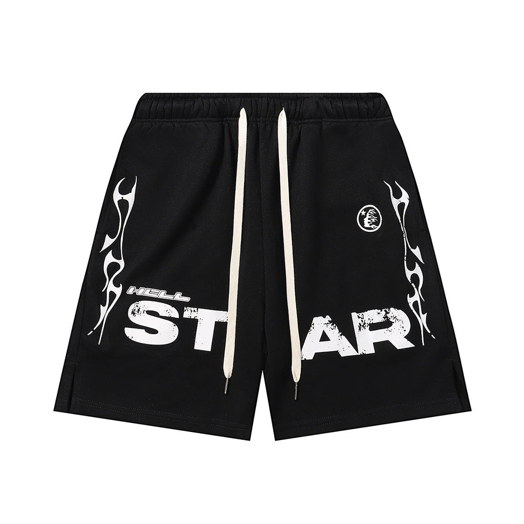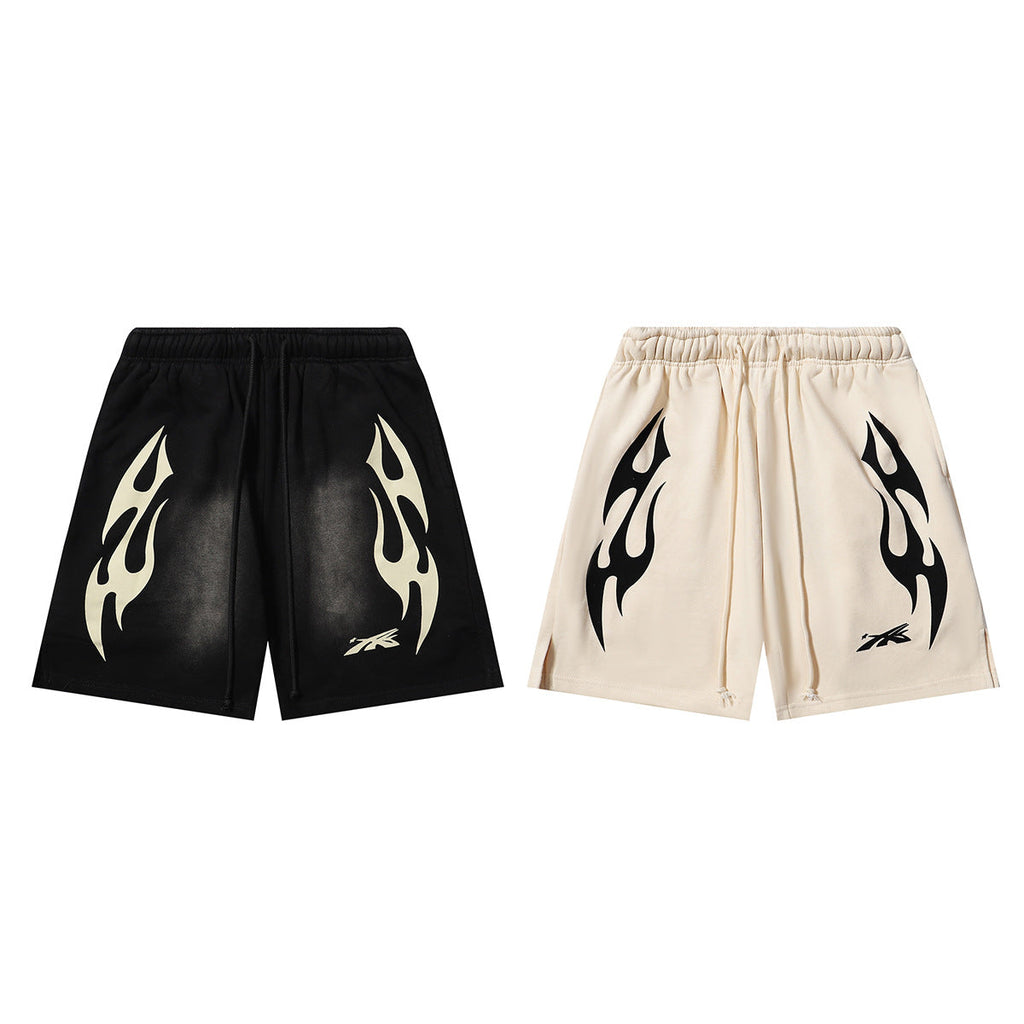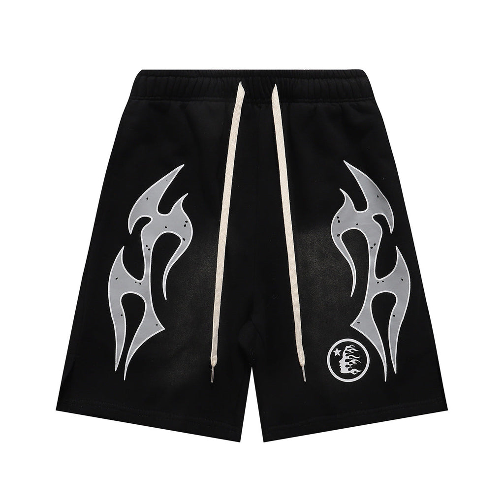 Hellstar Shorts Sports Flame Shorts Flame Print Mud Print Old Wash Loose Shorts