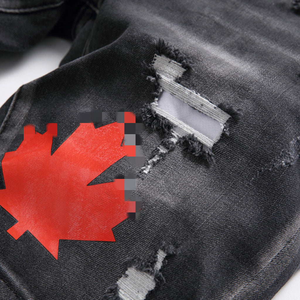 DSQ2 Short Jeans Ripped Patch Slim-fit Stretch Denim Shorts