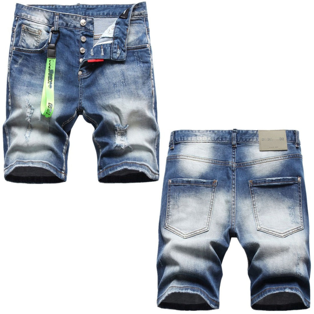 DSQ2 Short Jeans Ripped Patch Slim-fit Stretch Denim Shorts
