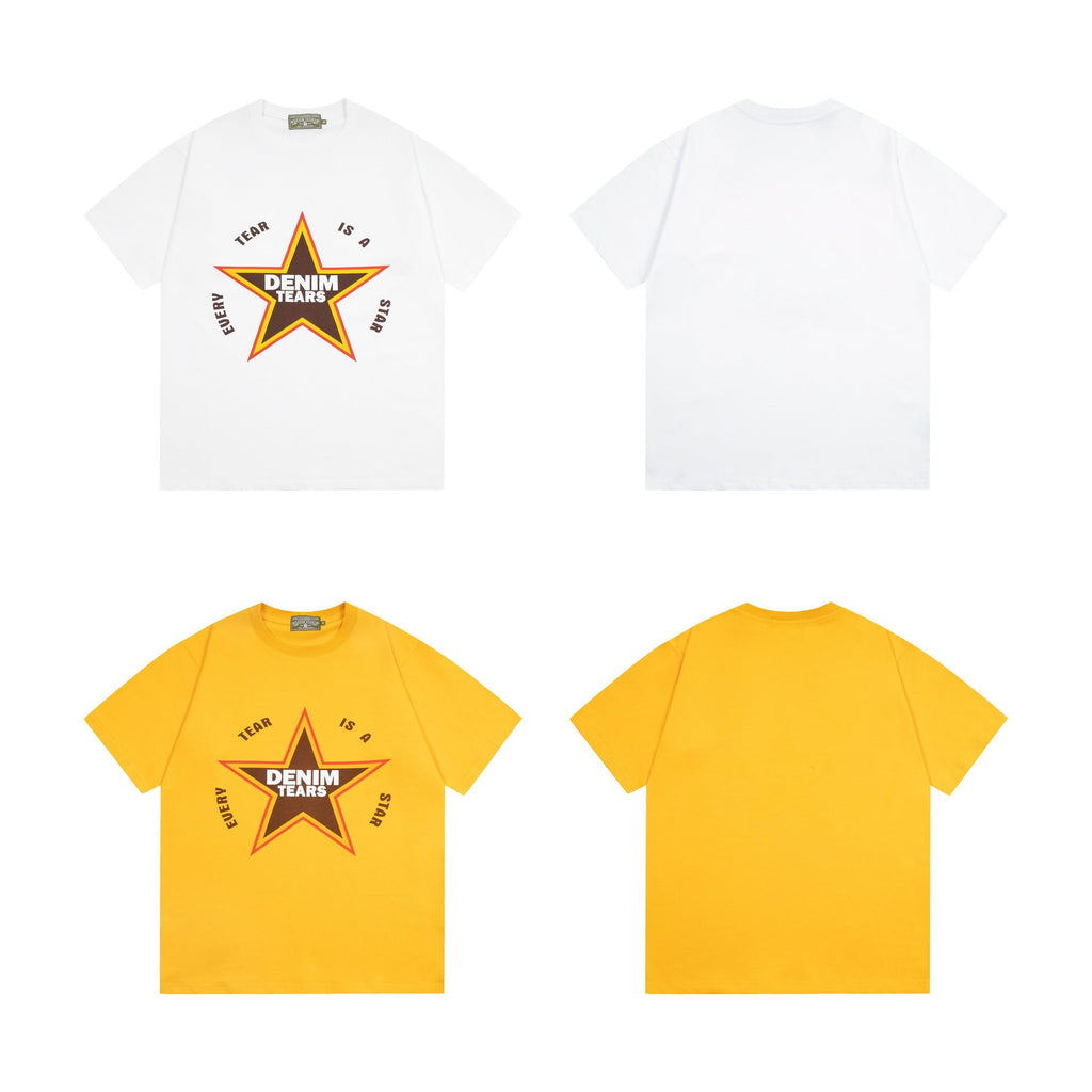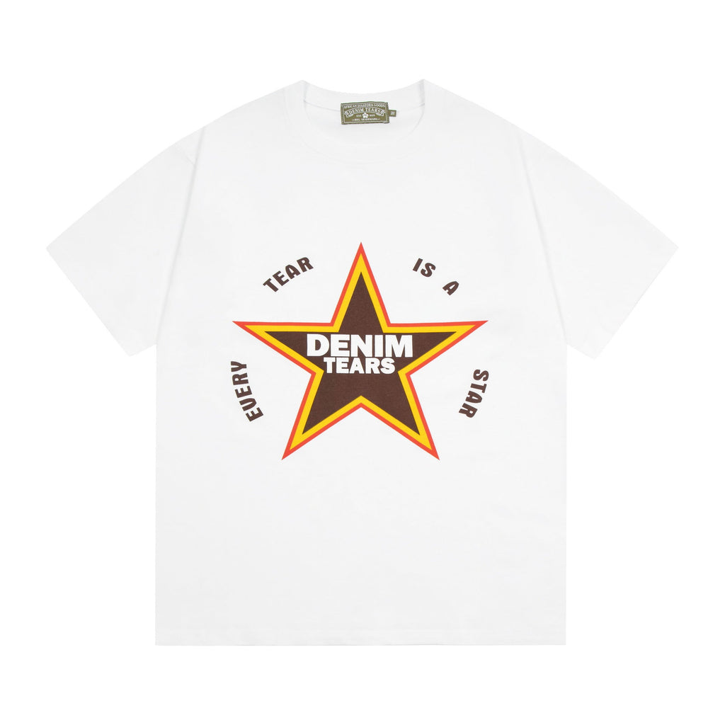 Denim Tears T Shirts D.T Kapok Five-Pointed Star Letter Print Short-Sleeve T-shirt