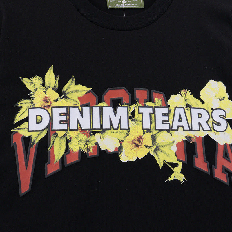 Denim Tears T Shirts Vintage Avatar Oil Painting Flower Letter Printing Men's and Women's Loose Casual Short-Sleeved T-shirt