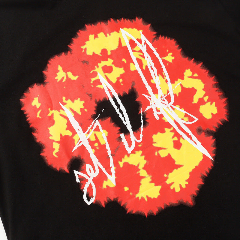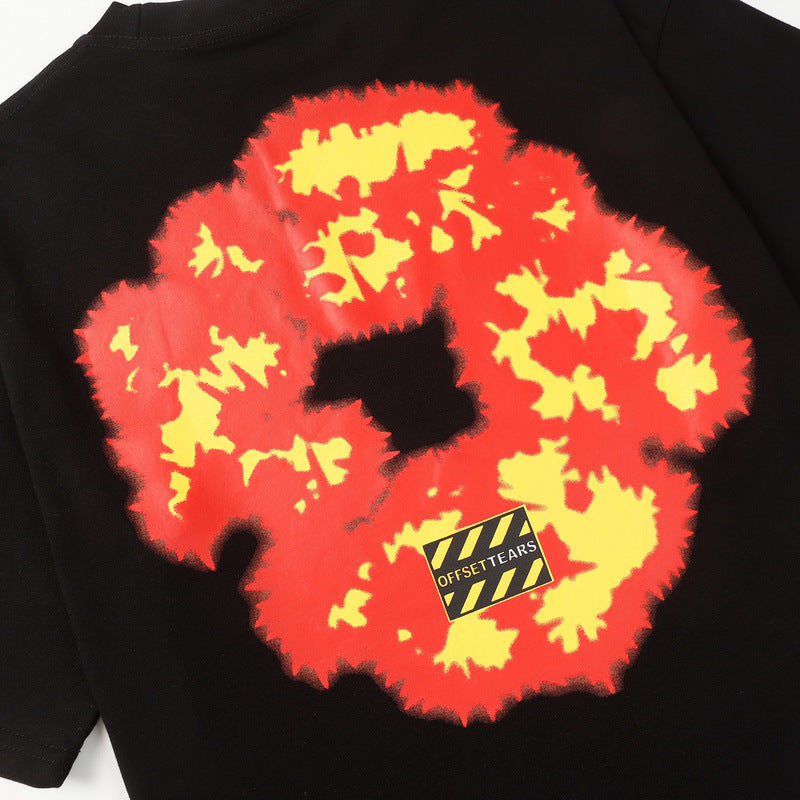 Denim Tears T Shirts Flame Wood Cotton Printed Loose Short Sleeve T-shirt