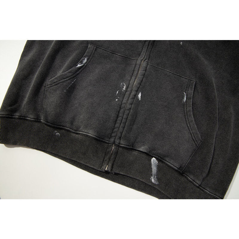 Gallery Dept Hoodie Embroidery Letter Splash Ink Wash Hooded Sweater Cardigan Jacket