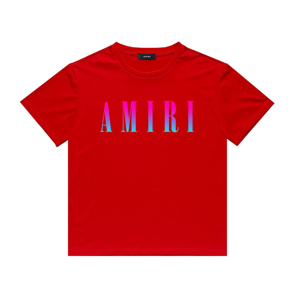 Amiri T Shirt Gradient Letter Flower Casual Hip Hop Short Sleeve T-shirt