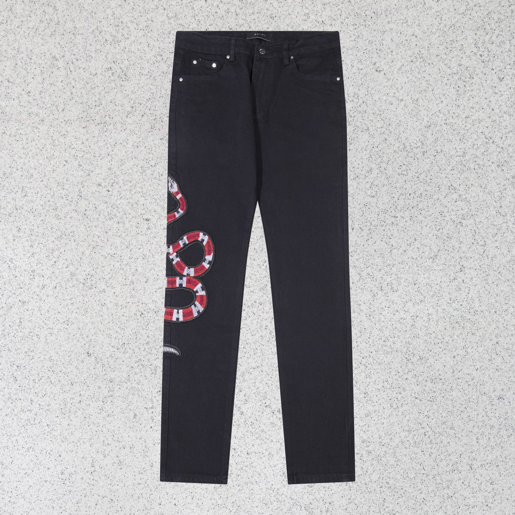 Amiri Jeans Red Belly Brocade Stretch Jeans