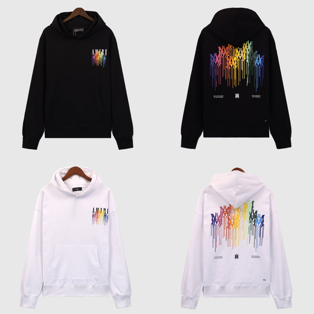 Amiri Hoodie OW Rainbow Letter Pattern Pullover Hooded Sweater