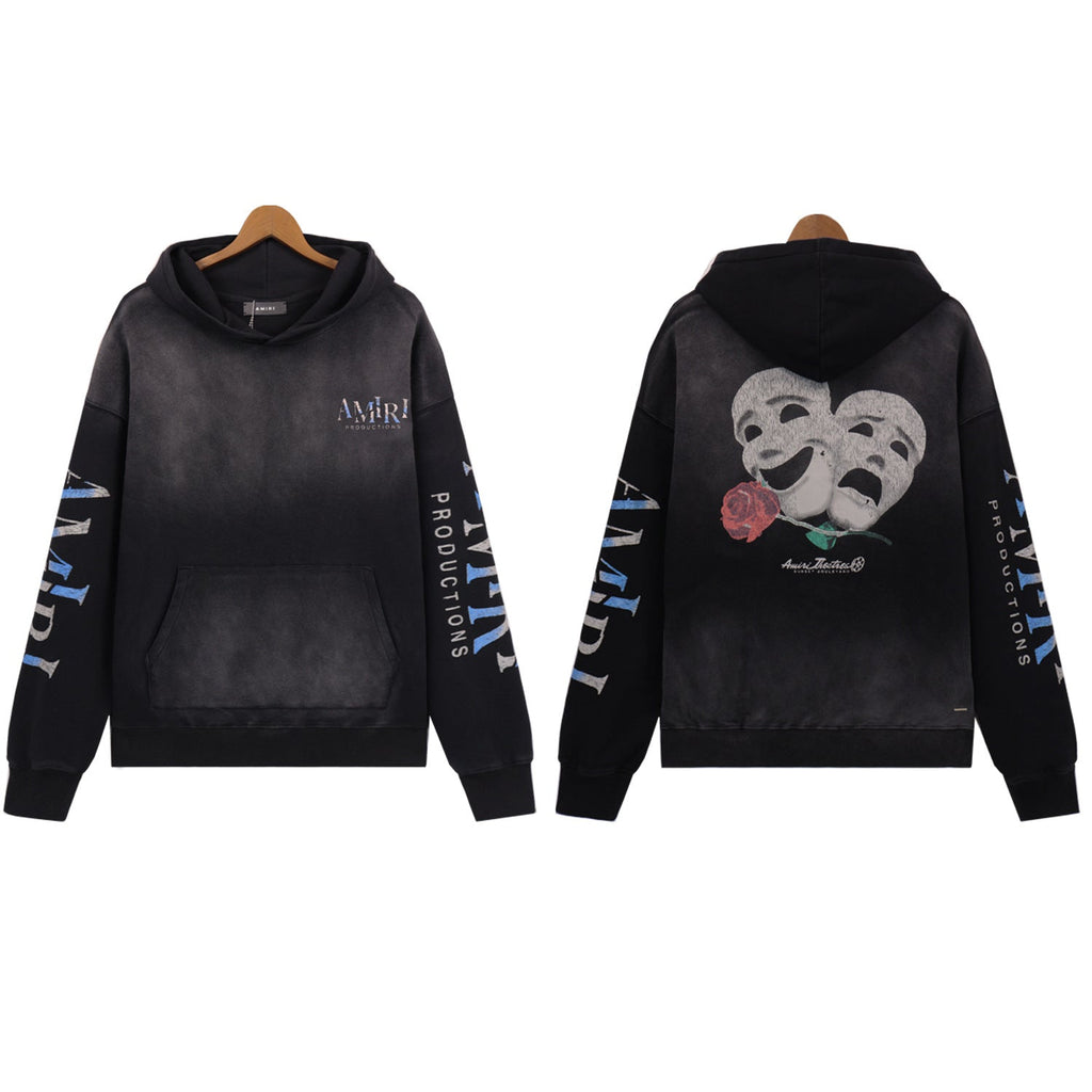 Amiri Hoodie AMI Rose mask pattern print hooded sweater for men and women