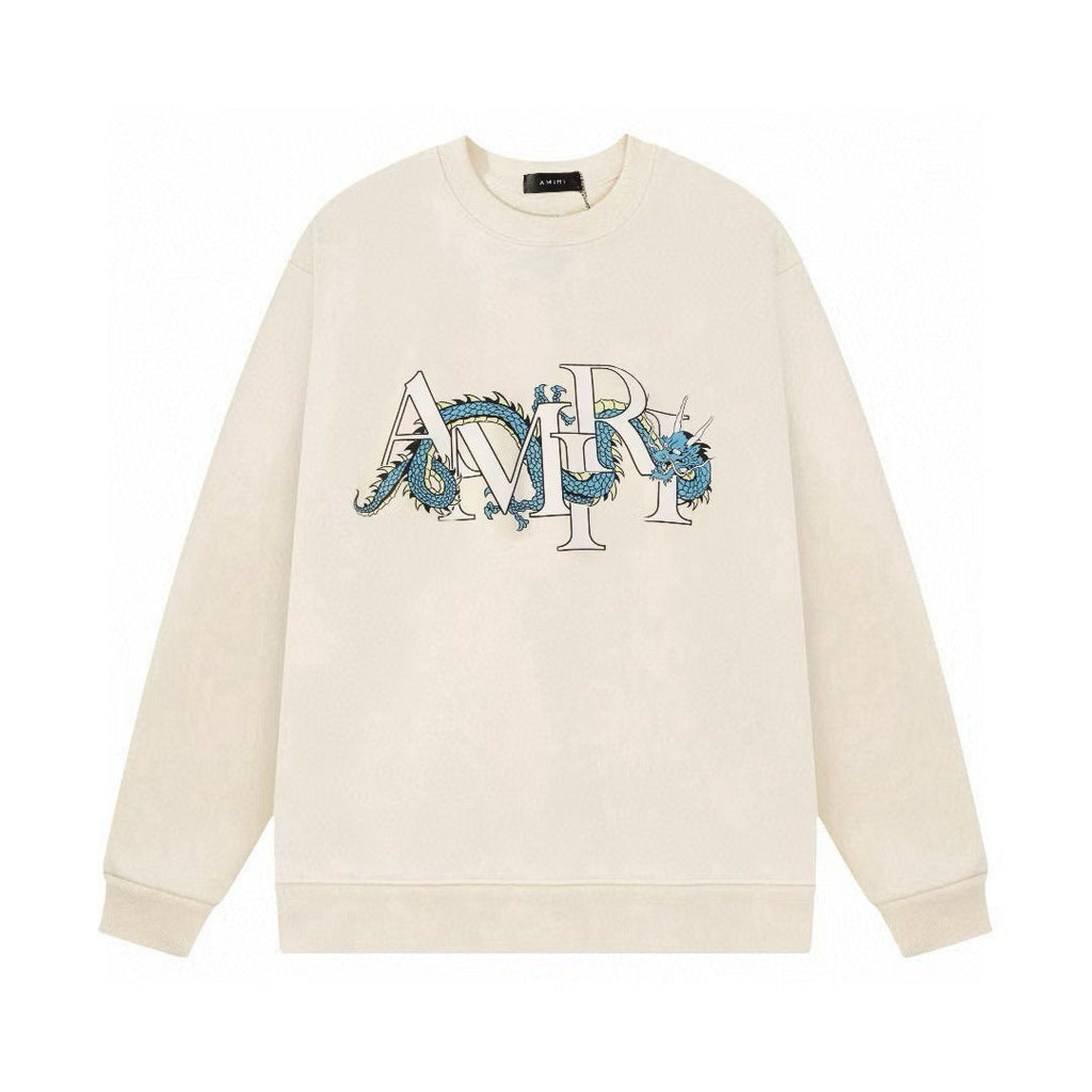 Amiri Sweatshirt Autumn/Winter AMI Blue Dragon Letter Pattern Crew Neck Pullover Sweater