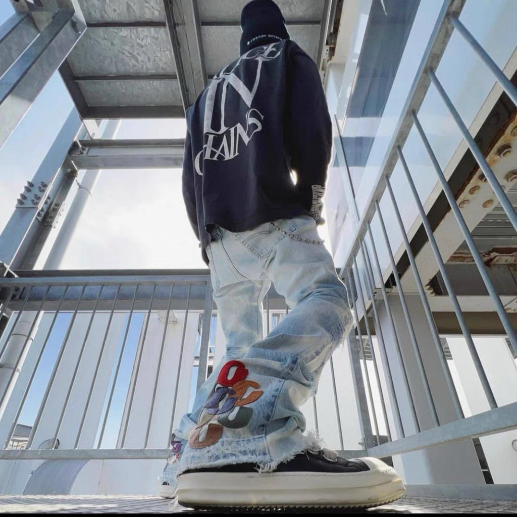 Gallery Dept Jeans leather label embroidery water ripple gradual change wash jeans