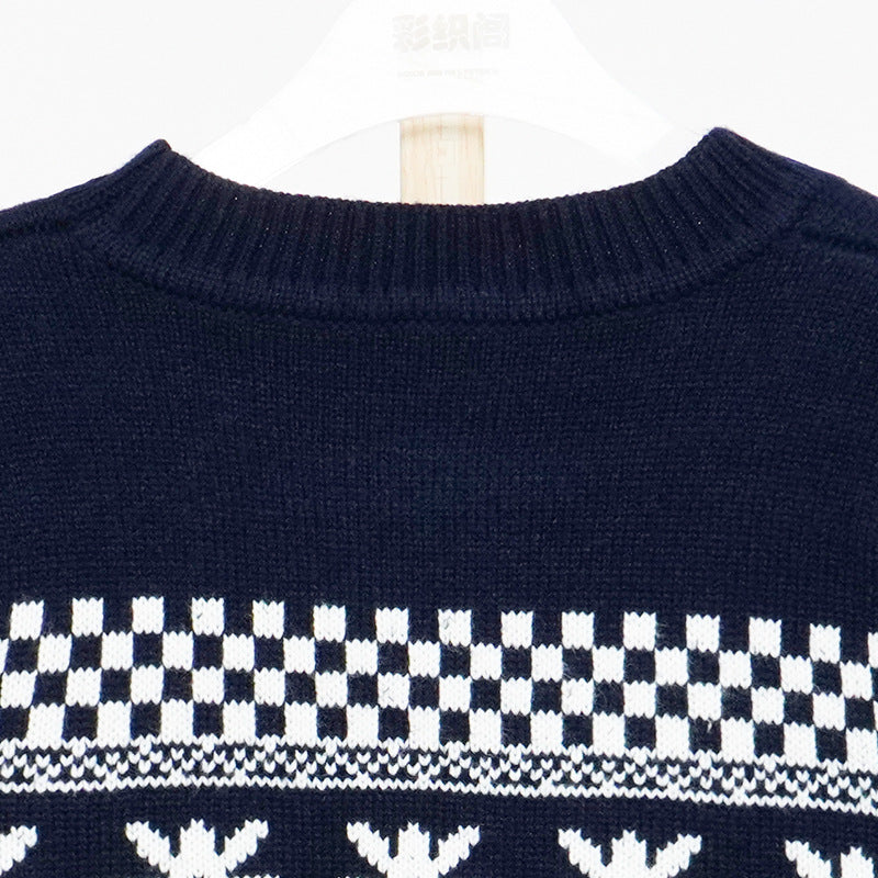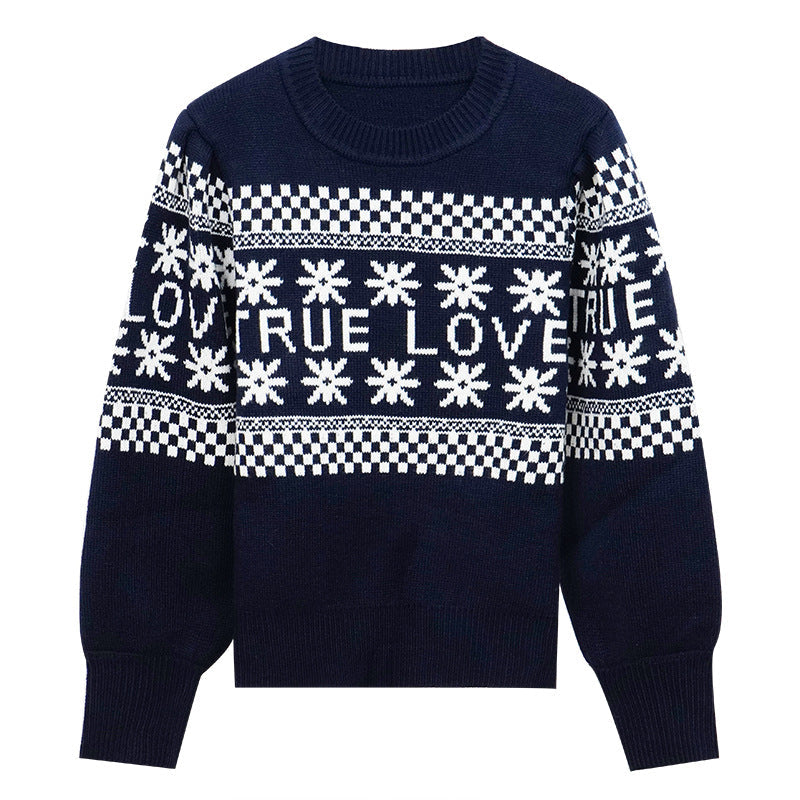 Black Christmas Sweater All-Matching Floral Plaid Sweater