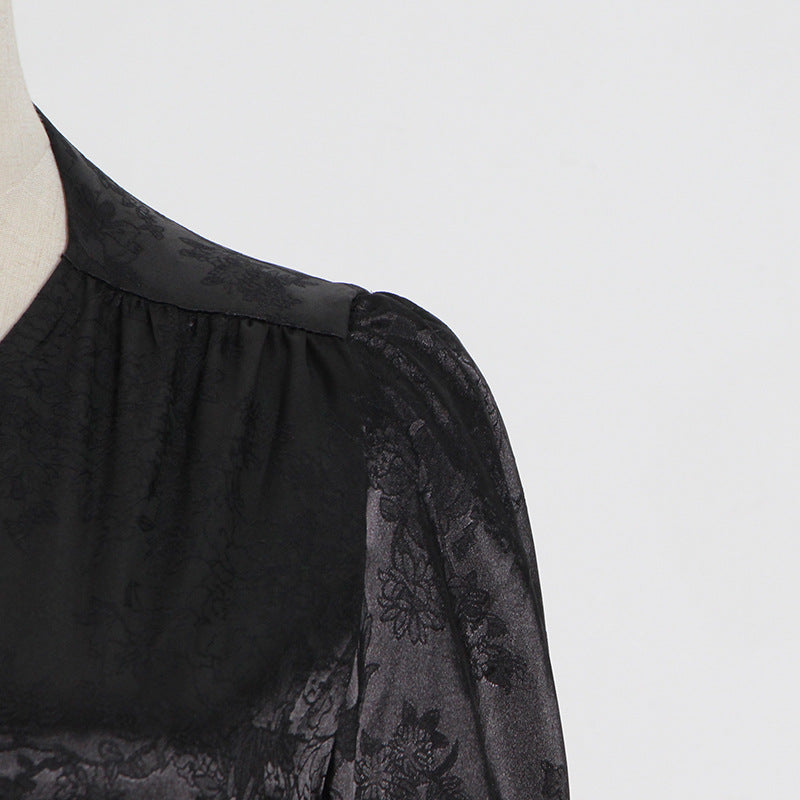 Betty Draper Valentine 'S Day Dress Satin Long Big Hem Dress Autumn Printed Dress