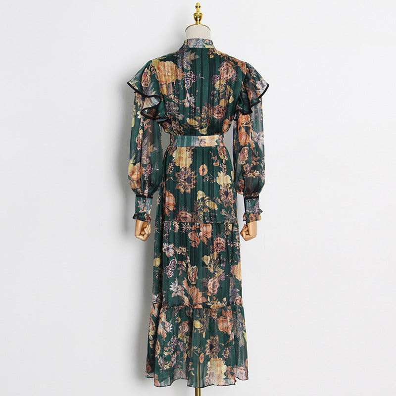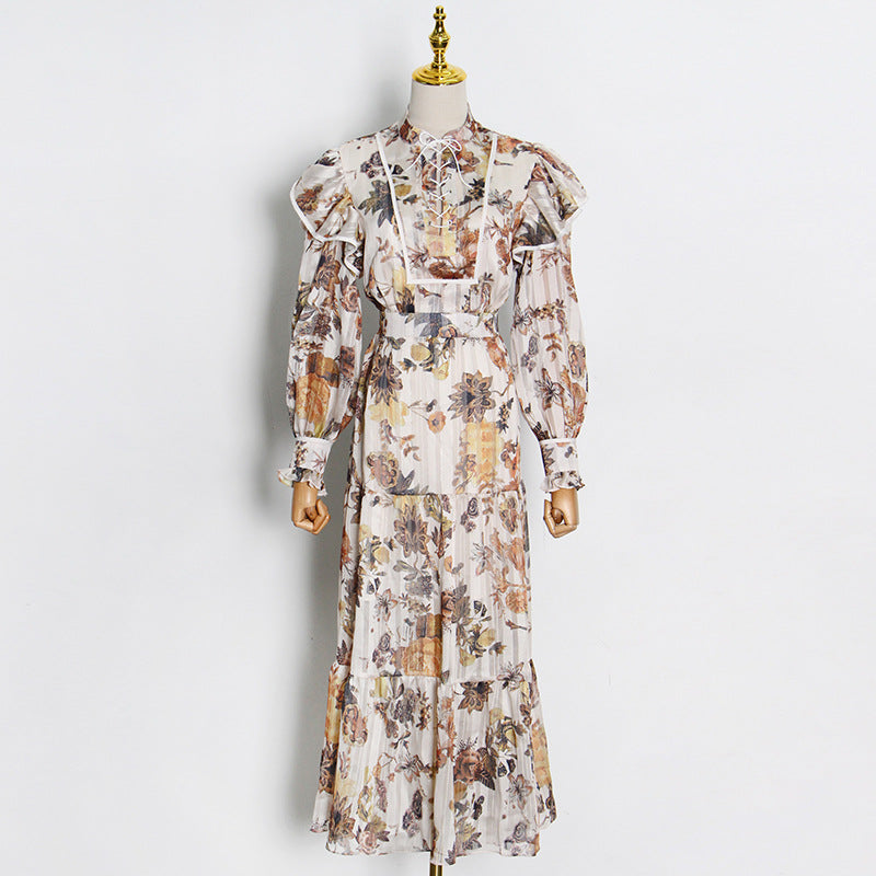Betty Draper Valentine's Day Dress Spring Vintage Printed Collar Long Dress
