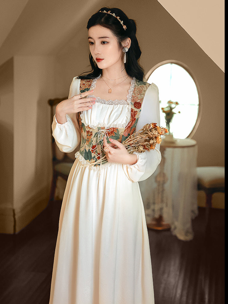 Betty Draper Valentine's Day Dress Spring and Autumn Retro Dress Gentle Flower Skirt Fairy Dress