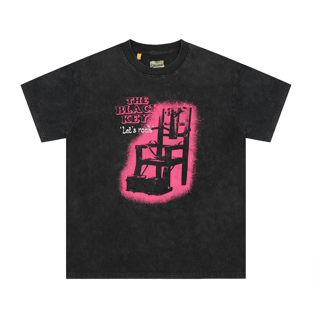 Gallery Dept T Shirts Dark Black Seat Printed Washed Distressed Short Sleeve
