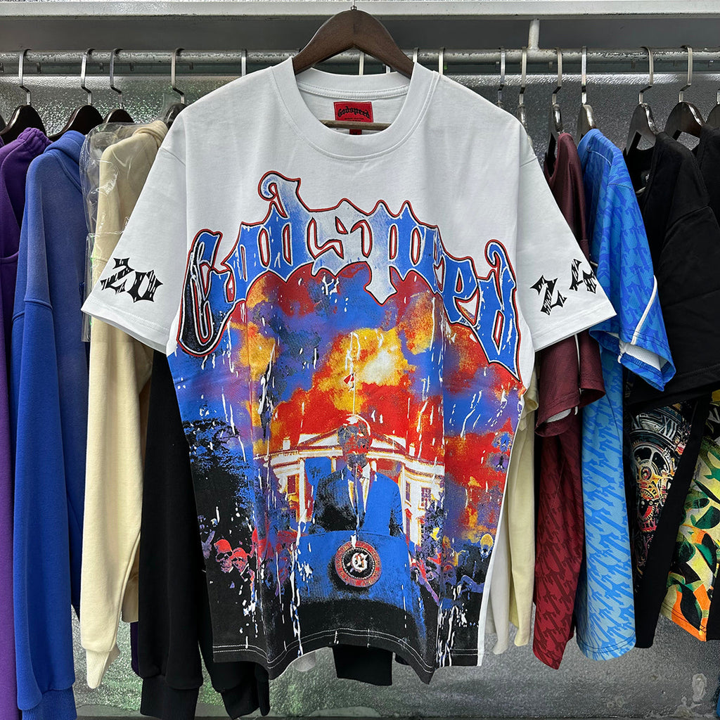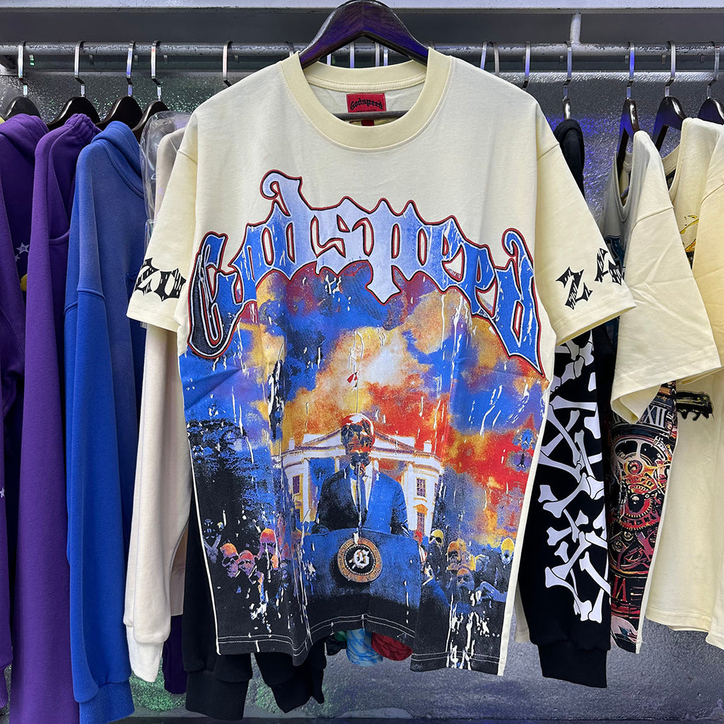 Godspeed T Shirts Speech Skull Printing Cotton Casual Crew Neck Short Sleeve Men and Women