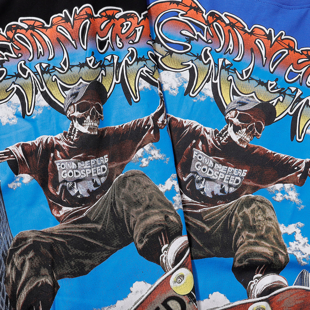 Godspeed T Shirts Urban Skateboard Skull Junior Print Cotton Casual Short Sleeve Men and Women