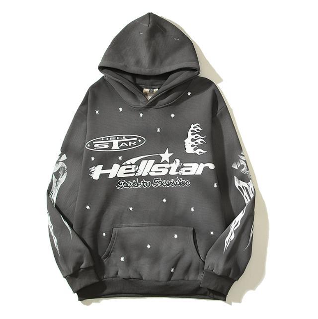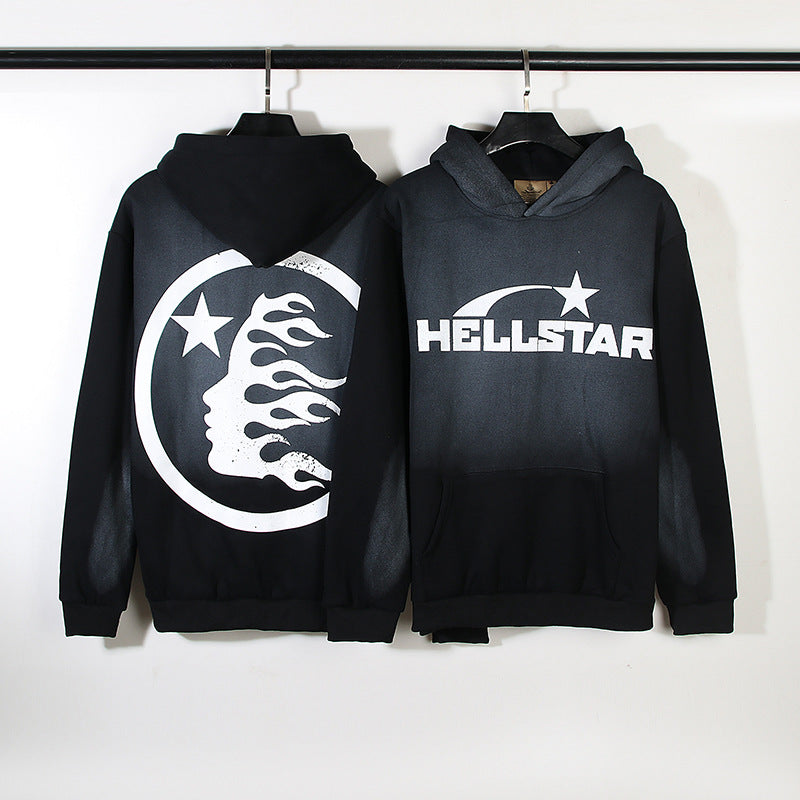 HS Hoodie Vintage Distressed Crack Print Casual Loose
