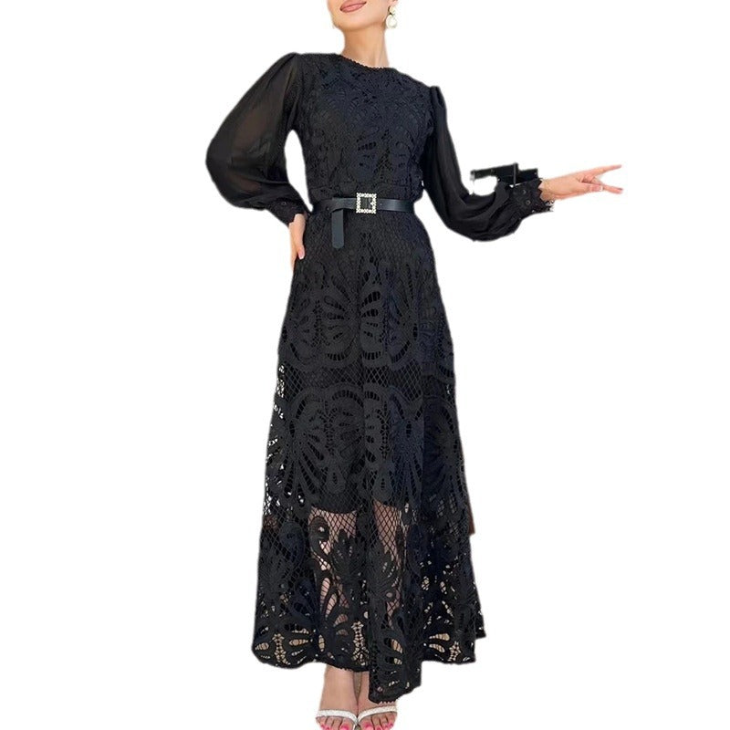 Bohemian Dress French Retro Lantern Sleeve Lace-up Dress