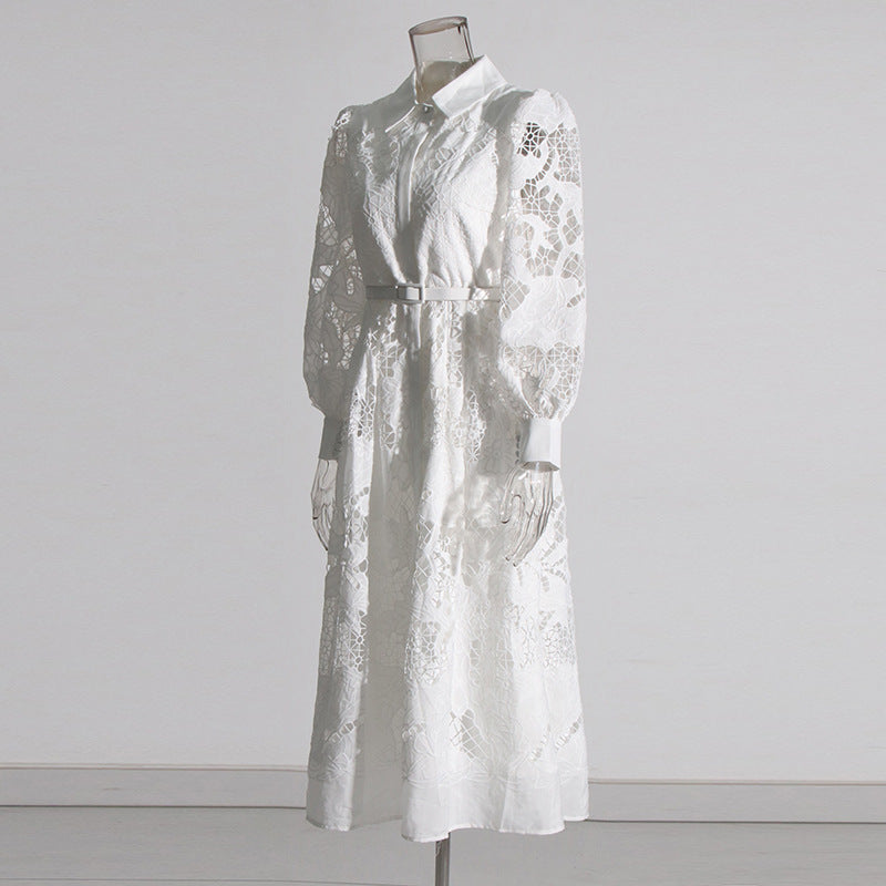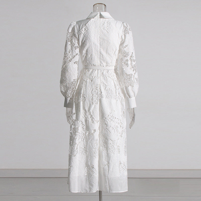 Bohemian Dress Lantern Sleeve Embroidery Hollow out