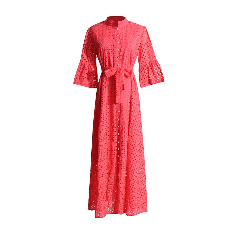 Bohemian Dress Fashion Retro Embroidery Lace-up Dress