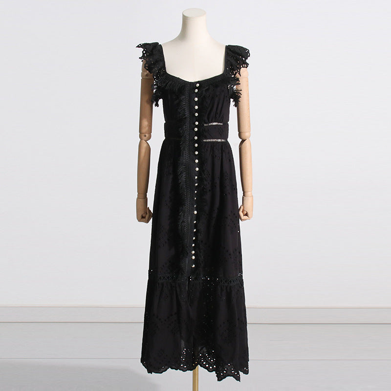Bohemian Dress Dignified Hollow Embroidered Strap Long Dress