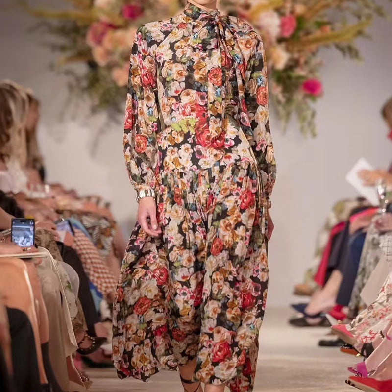 Bohemian Dress Vintage Floral Lace-up Dress
