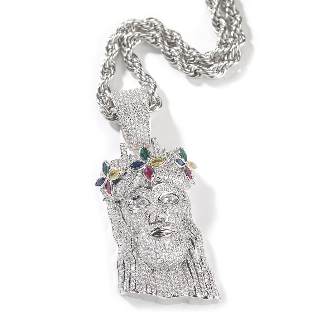Jewelry Clover Crown Portrait Pendant Hip Hop Copper with Zircon Egypt Pieces Jesus Pieces Royalty Spectrum