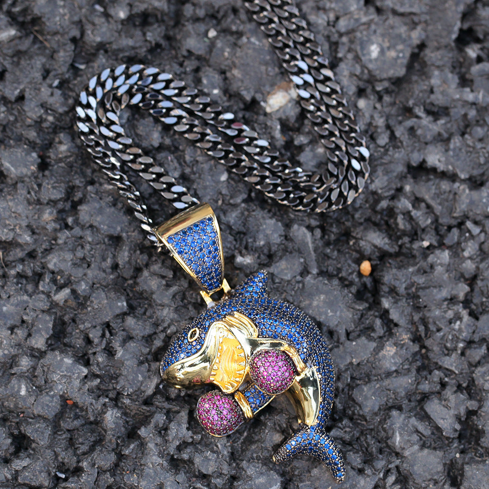 Jewelry Hip Hop Boxing Shark Zircon Pendant Necklace Animal Spectrum Armament