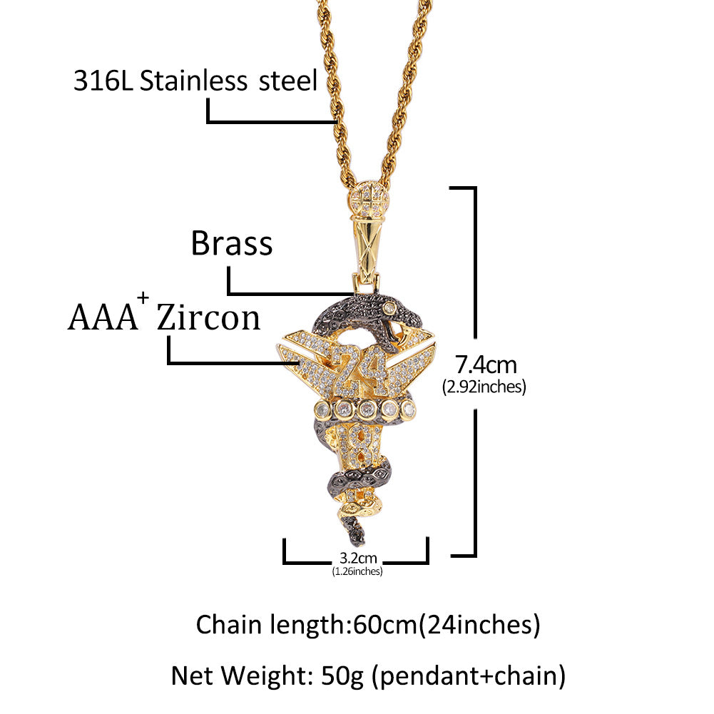 Jewelry Hip Hop Kobe Black Mamba Viper Cross Pendant Necklace Angel Pieces Animal