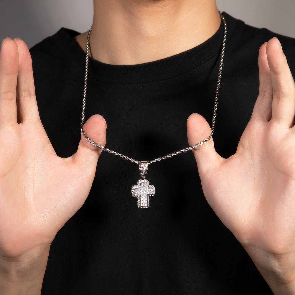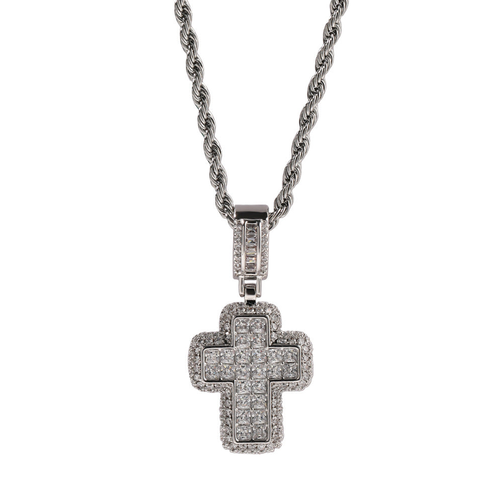Jewelry T Square Cross Pendant Necklace Copper with Zirconium Spectrum St. Valentine's Crosses