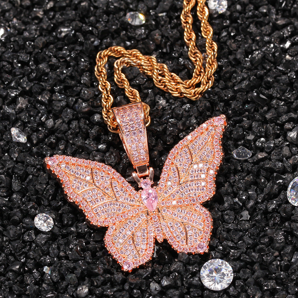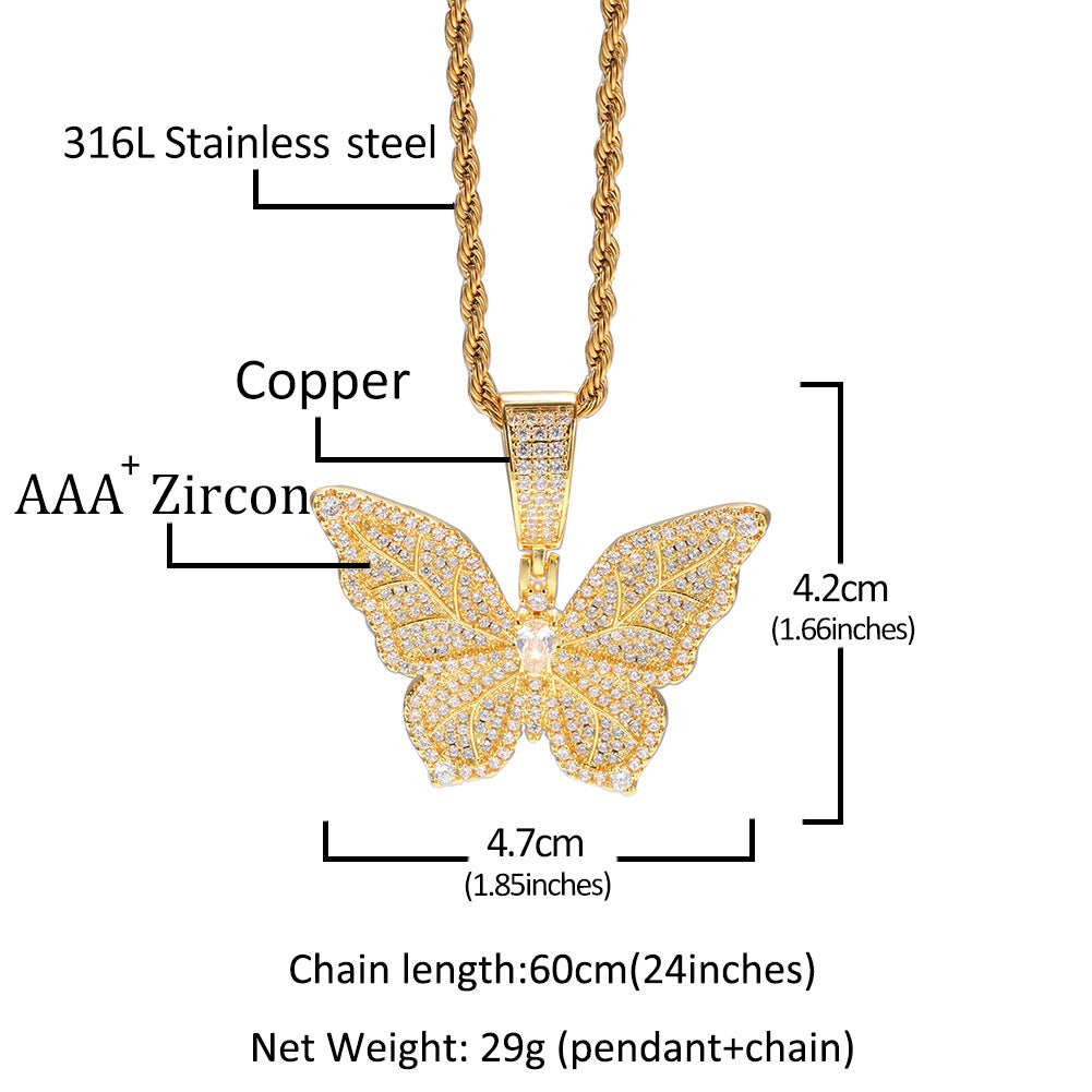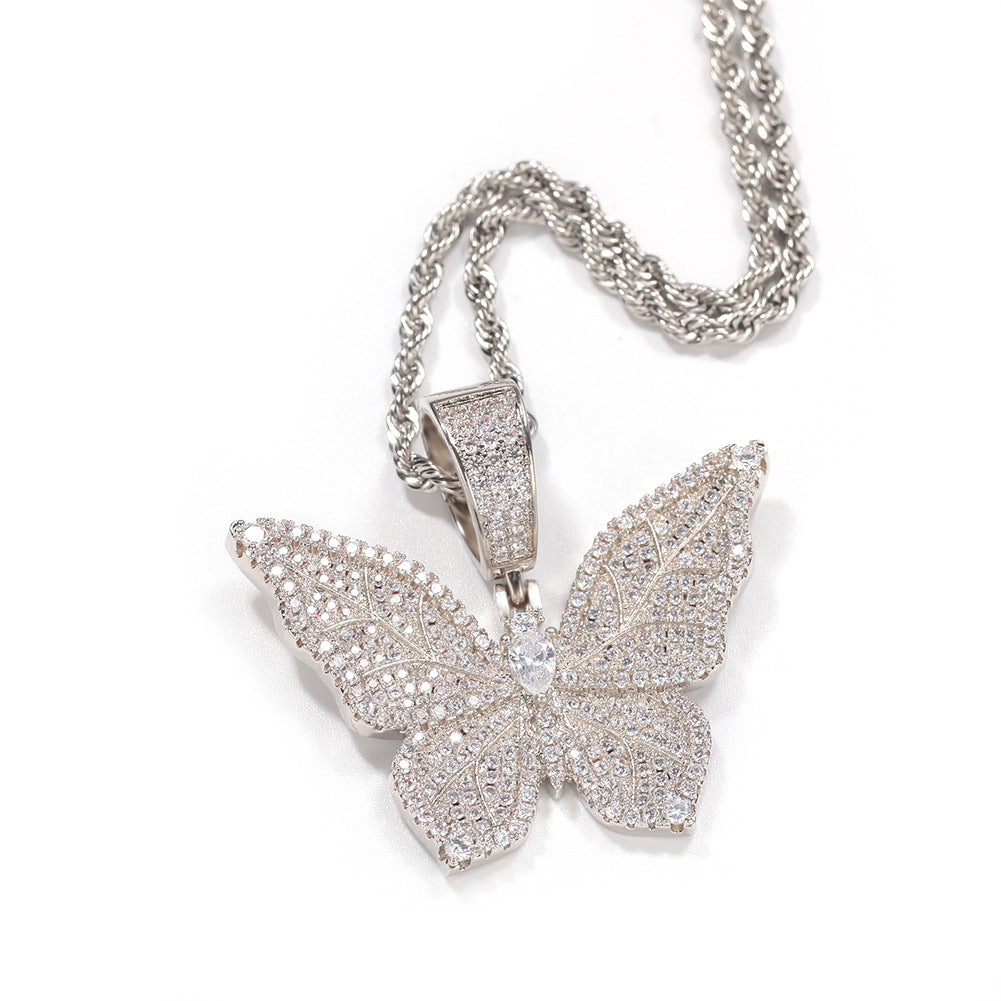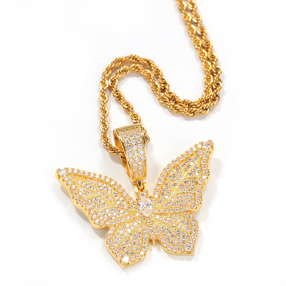 Jewelry Hip Hop Zircon Butterfly Pendant Necklace ins Wind Butterfly Animal St. Valentine's Spectrum