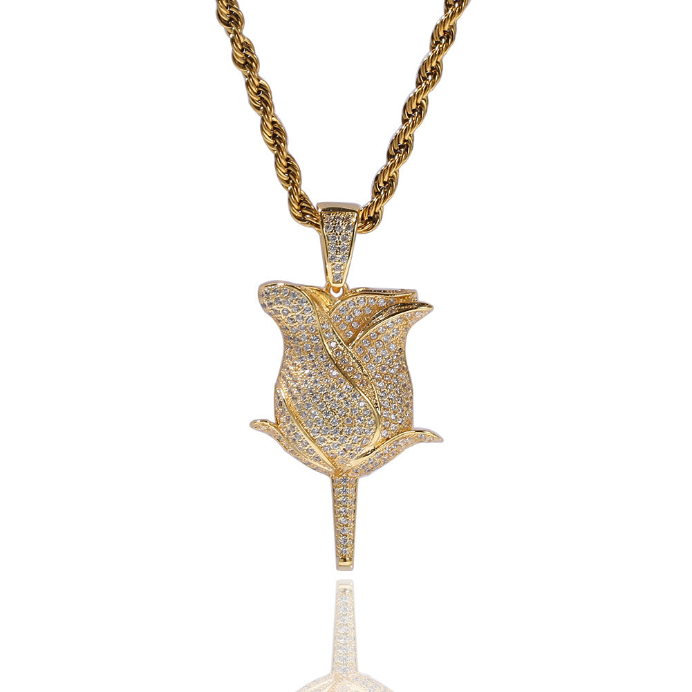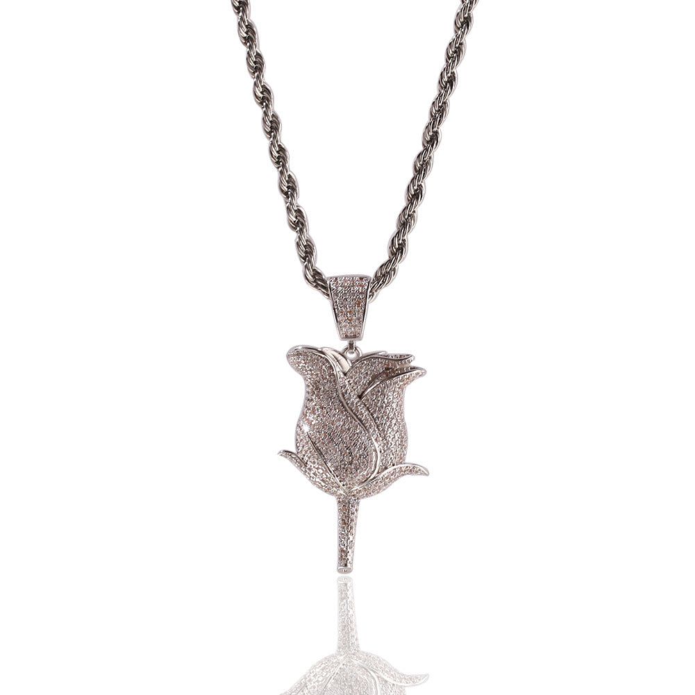 Jewelry Microencrusted Zircon Rose Pendant Necklace Light Luxury Spectrum St. Valentine's