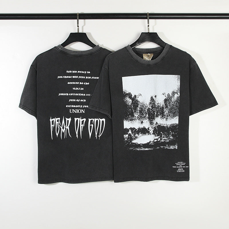 Fog Essentials T Shirts Spring and Summer FOG Washing Water Old Crew Neck Short Sleeves