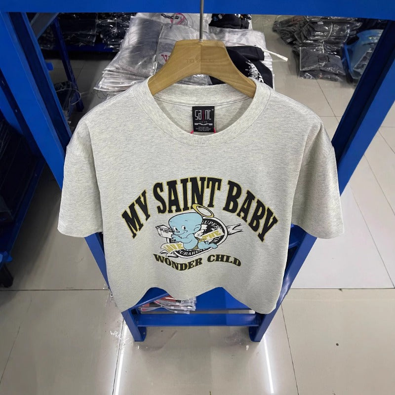 Fog Essentials T Shirts Spring/Summer, Angel Baby Pattern Crew Neck Short Sleeves