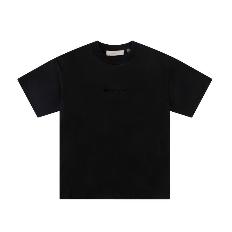 Fog Essentials T Shirts Spring Summer FOG Flocking Letters Crew Neck Pullover Short Sleeves