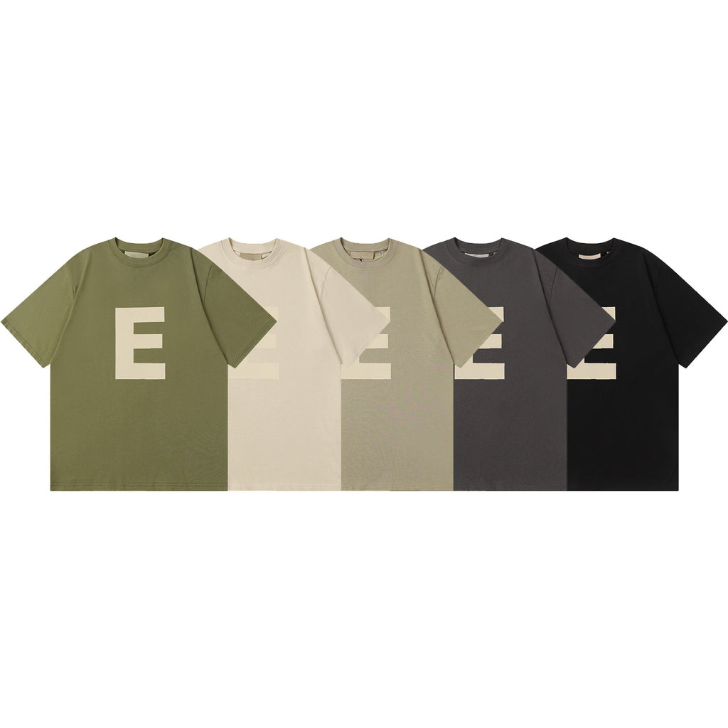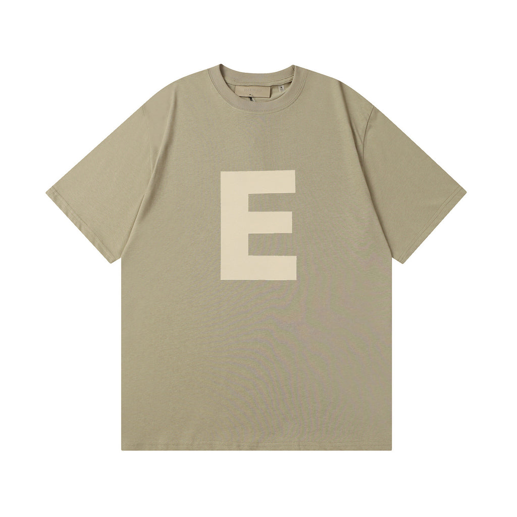 Fog Essentials T Shirts Spring Summer FOG Flocking E Letter Crew Neck Short Sleeves