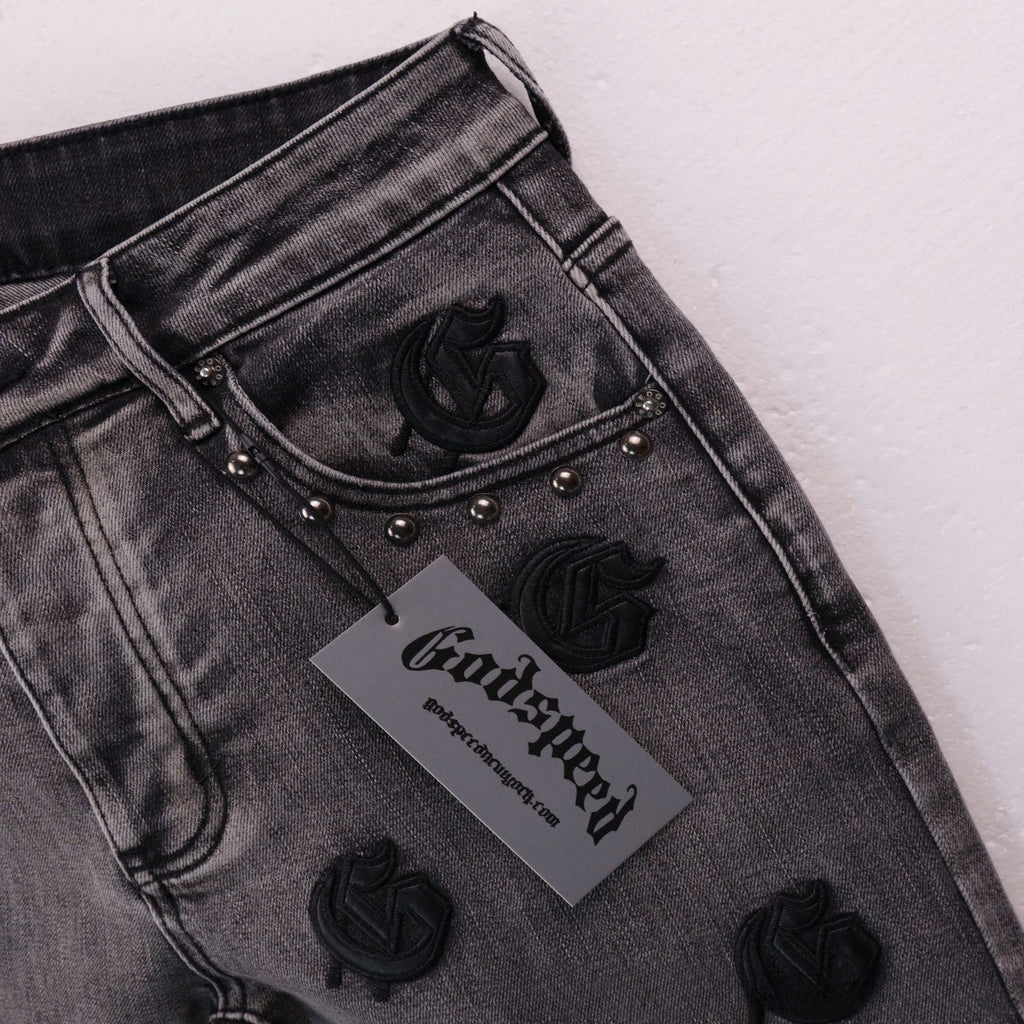 Godspeed Shorts Summer GOD Letter Pattern Embroidered Casual Denim Shorts