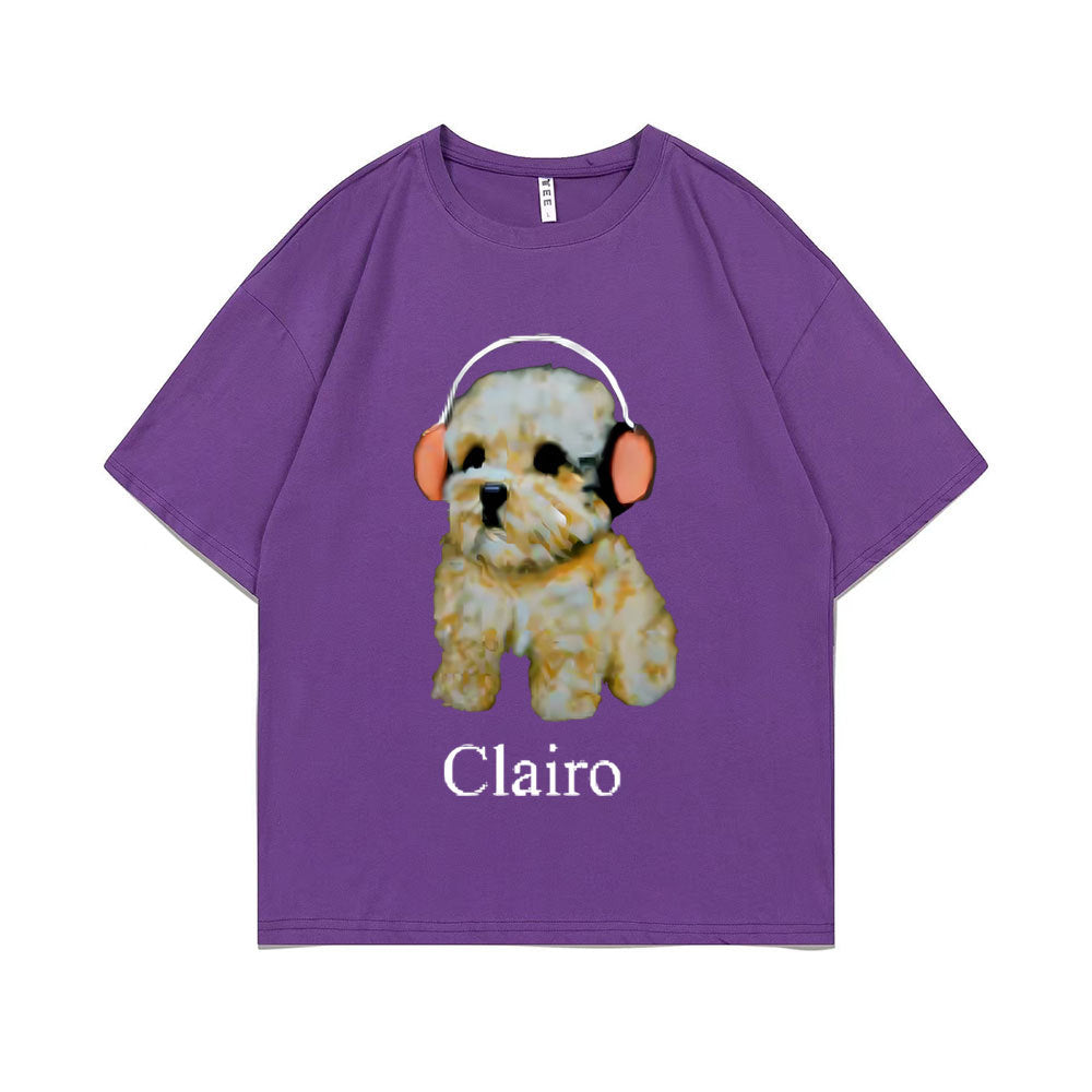Clairo Dog Puppy Headphones Graphic Print Tshirt Summer Male